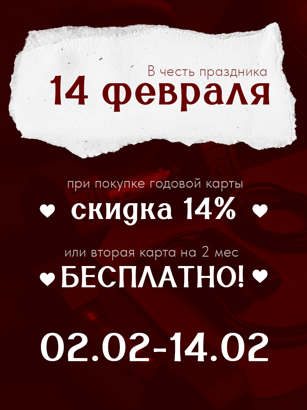 14 февраля — день, когда все говорят о любви. Клуб уже украшен к празднику, и мы предлагаем выразить её через заботу о здоровье! Дарим эксклюзивные предложения для пар и для тех, кто ценит себя.